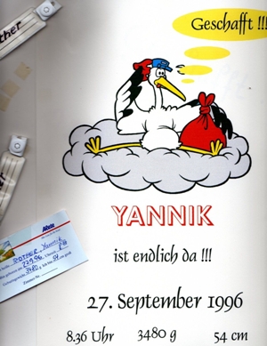 Als du deiner Mama das erste Mal gezeigt wurdest, war auch Mama überglücklich und hatte Tränen in den Augen. Sie war überglücklich und hat gedacht – oh, mein Yannik hat ja rote Haare … als Mama und ich uns dann als glückliche Eltern in den Armen lagen hat Mama mich mit Fragen gelöchert … ich habe ihr alles bis ins kleinste Detail von dir erzählt, und eben auch von deinen blauen Augen und blonden Haaren. Meine Susi war glücklich. Ich habe den Tag bei meinen Beiden verbracht und bin nur ungern nach Hause gefahren.