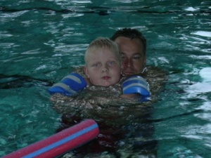 Schwimmen war für Yannik etwas ganz tolles – endlich konnte er sich frei bewegen. Er fühlte sich leicht und konnte alleine gehen, hüpfen und schwimmen ( natürlich mit Schwimmhilfen ) – er ist getaucht und sehr gerne vom Beckenrand ins Wasser gerutscht. Sonntags stand immer Schwimmen mit Papa (manchmal auch mit Papa + Mama) auf dem Terminplan und in den letzten Monaten sind des Öfteren auch Julian, Leif und Lena mitgefahren. Mit 4 Kids im Gepäck war Stefan somit in manche Wasserschlacht geraten. Yannik hat sich immer sehr aufs Schwimmen gefreut... wie oft hat Stefan Yannik die Treppen im Schwimmbad hoch getragen, damit auch Yannik rutschen kann? Wie oft haben wir Yannik Treppen hoch getragen, damit er auch bei Freunden ins Kinderzimmer konnte? Es gab immer einen Weg, und wenn es einmal unüberwindbar schien, dann haben Papas starke Arme dafür gesorgt, dass Yannik ans Ziel kam. Wie oft haben wir „das“ alles gerne gemacht, weil es so normal für uns war?