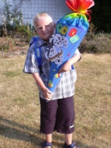 Wir haben unseren Schatz nicht in der Melsdorfer Grundschule angemeldet, sondern ihn auf der Schule im BZM eingeschult. Ein unvergessener Tag für uns alle – Yannik mit Schultüte – er ist mit seiner Tüte zu diesem Zeitpunkt noch um unser Haus gelaufen, dass wir erst im Sommer gekauft und behinderten gerecht umgebaut haben. Wir sind im nach hinein so dankbar für diese Entscheidung – Yannik ist gerne zur Schule gegangen, er hat es geliebt, von seinem Malteser Fahrdienst abgeholt und gebracht zu werden. Er hatte eine tolle Klasse und obertolle Lehrer und Therapeuten – er hat sie alle sehr gemocht. Er war in der Schule anerkannt und hat viele Freundschaften geschlossen. Wir sind besonders stolz darauf, dass unseren Yannik als einziger in seiner Klasse ein Grundschulzeugnis erhalten hat. Er hat an Nachmittagsprogrammen teilgenommen und wir Eltern wussten immer, dass Yannik dort gut „aufgehoben“ ist.